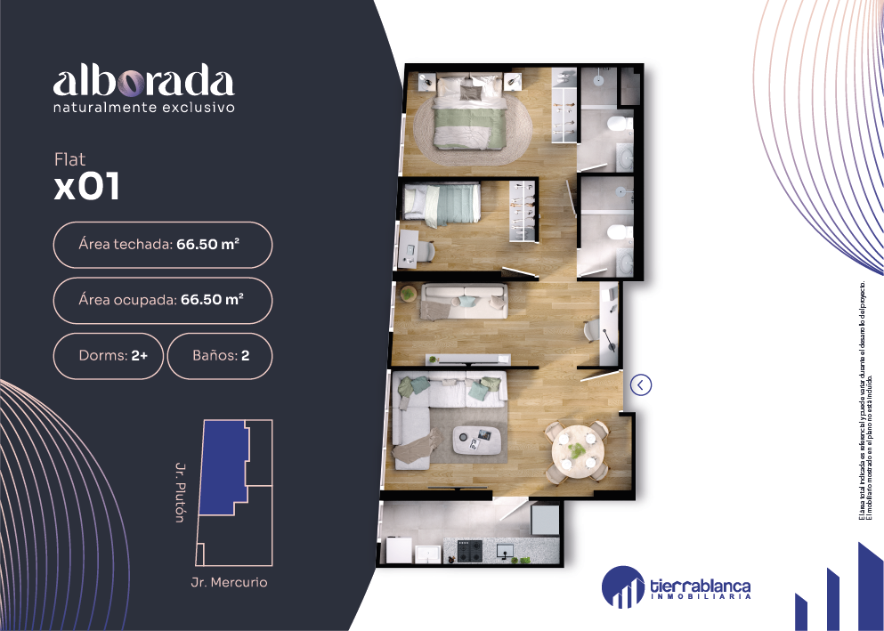 Alborada se ubica entre las avenidas Bertello, Mariano Cornejo y La Alborada, rodeado de parques y lugares de recreación deportiva y cultural, a minutos de centros comerciales como Plaza San Miguel y Open Plaza y cerca a reconocidas universidades como la Universidad Católica, Antonio Ruiz de Montoya, Universidad Privada del Norte y Universidad Mayor de San Marcos.